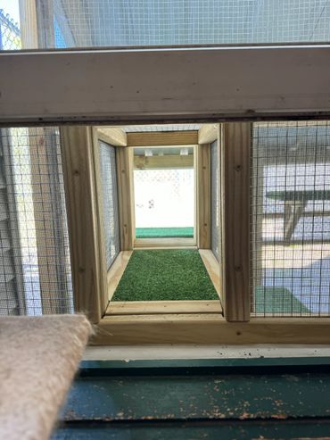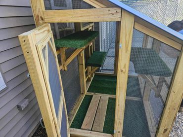 Featuring a fully enclosed area for your cats to explore outdoors safely and secure. They can climb on grass shelves, birds to watch, toys to play, and easy access back inside.